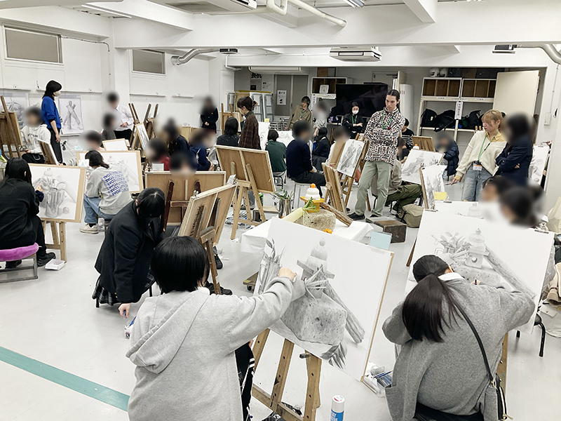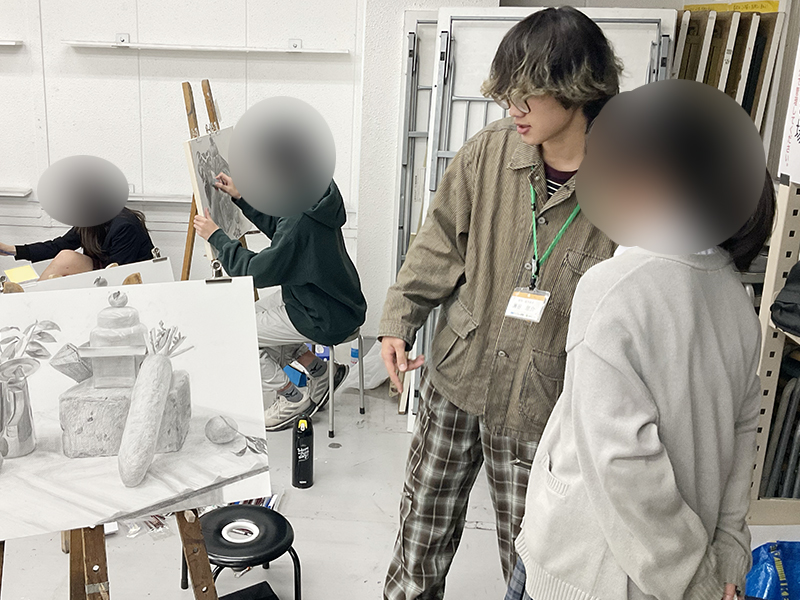 講習会では、実技の勉強を始めたばかりの生徒も多く参加しているので、道具の説明やデッサンの描き出し方などから丁寧に教えますよ!