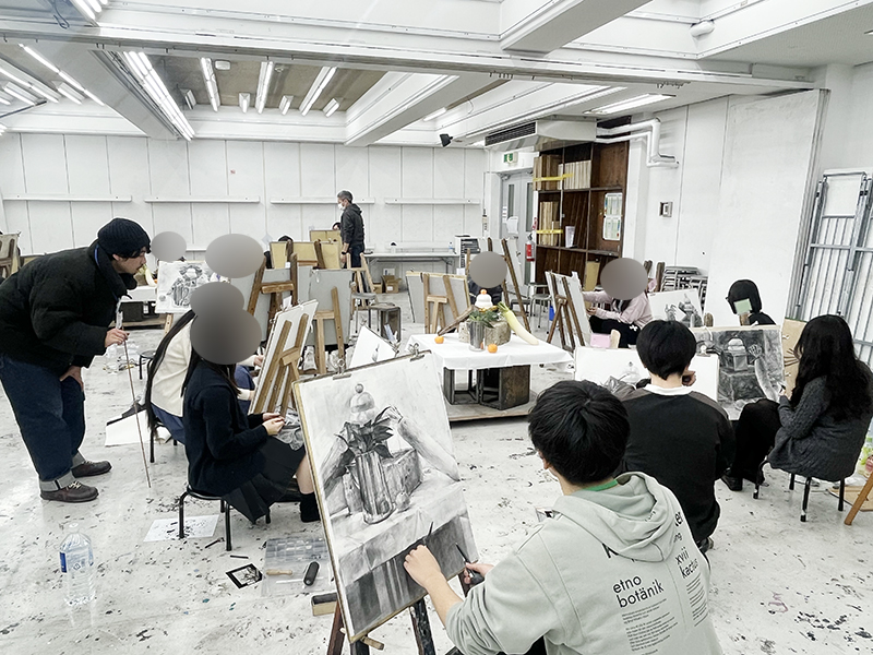 基礎科は夜間授業から始まります。初日のアトリエの様子をお届けします📷