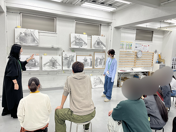 こちらは日本画のC先生によるデモンストレーションの様子。使う鉛筆の種類を説明しながら描いてくれています✏️
