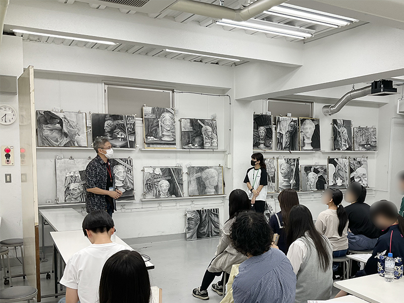 基礎科では、全コースで初めて実技を取り組む方や初心者に向けて丁寧に画材説明含めた導入を行なっています。