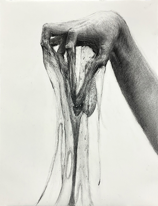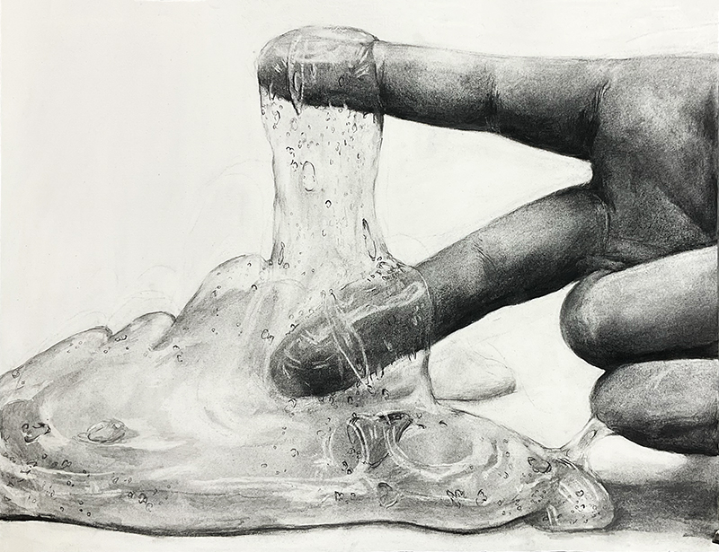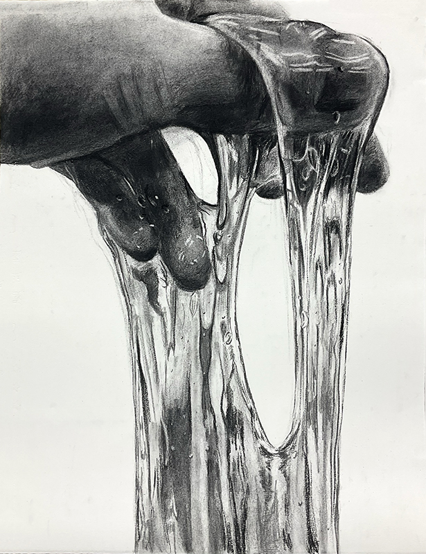 2作品ともまずは色調を見せ、その上で素手とスライム越しにぼやける手の描き分けが見事にできています⭕️