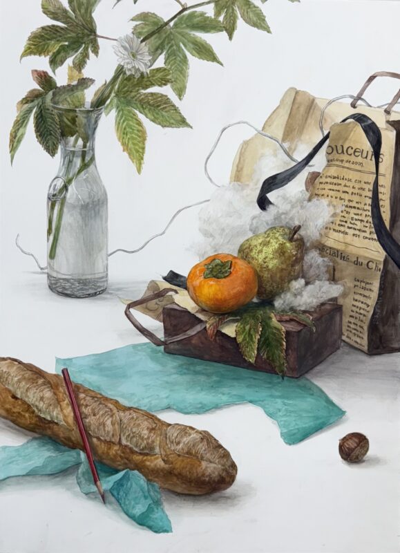 課題は着彩写生の1人1卓モチーフです