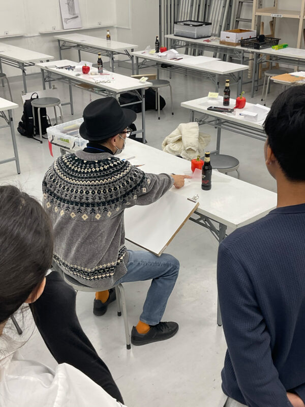 基礎科では、全コースで初めて実技を取り組む方や初心者に向けて丁寧に画材説明含めた導入を行なっています。