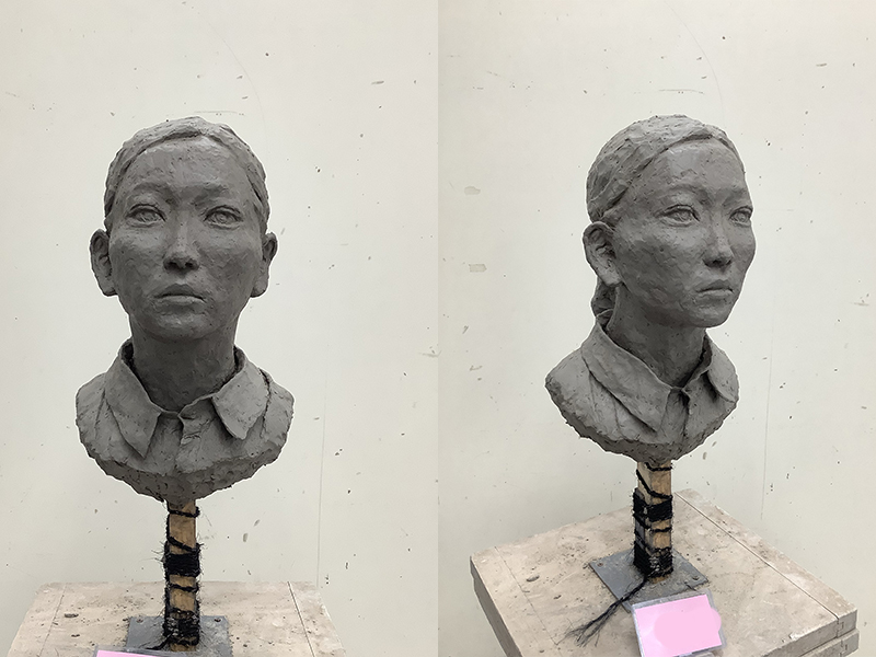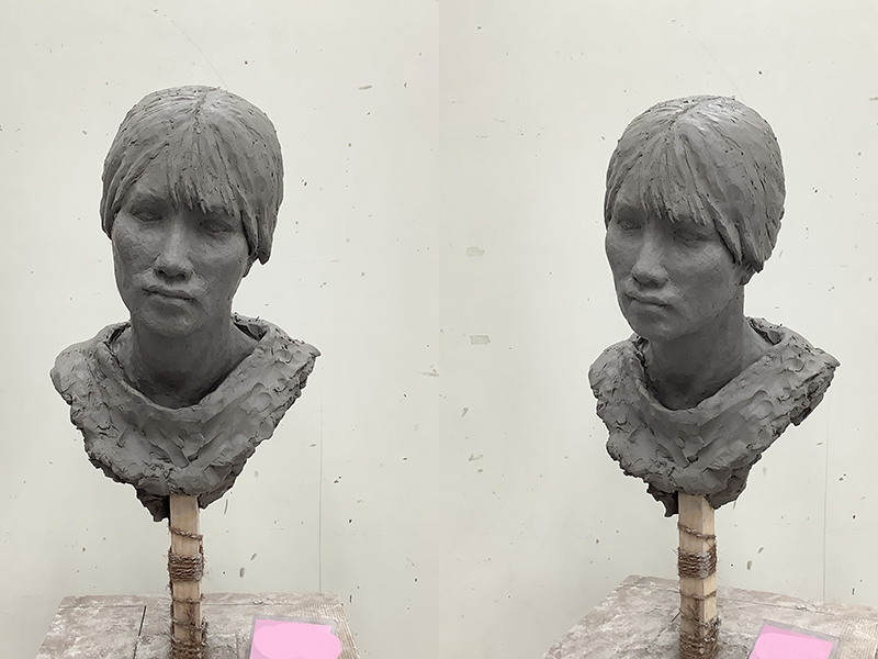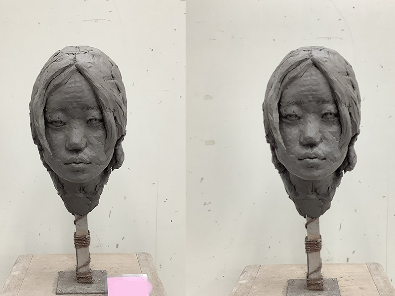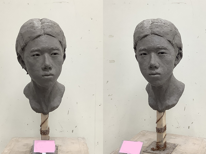 自刻像は、自分の顔を客観的に観察して、立体として正しく・説得力をもって立っているかが大切な点👉