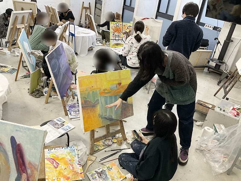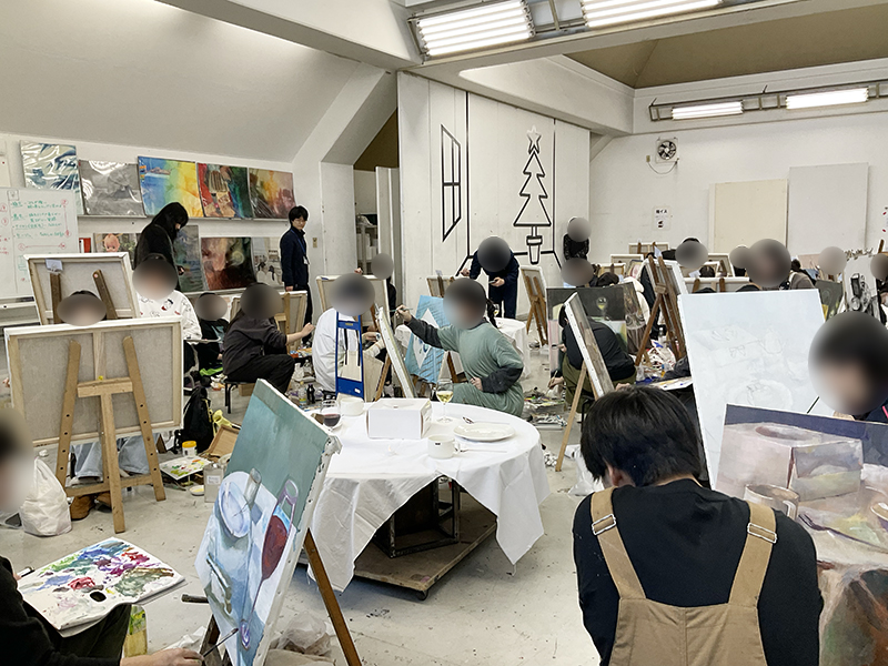 油画では2日に1回、描き途中の作品の仕上がりがアップするためのレクチャーを行なってましたよ。