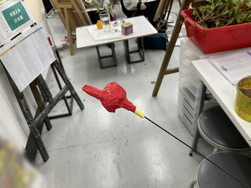 壁の平面と卓上の立体とを組み合わせて発想する課題。自分の視点を大切にしながらも出題から離れすぎることは禁物🙅♀️