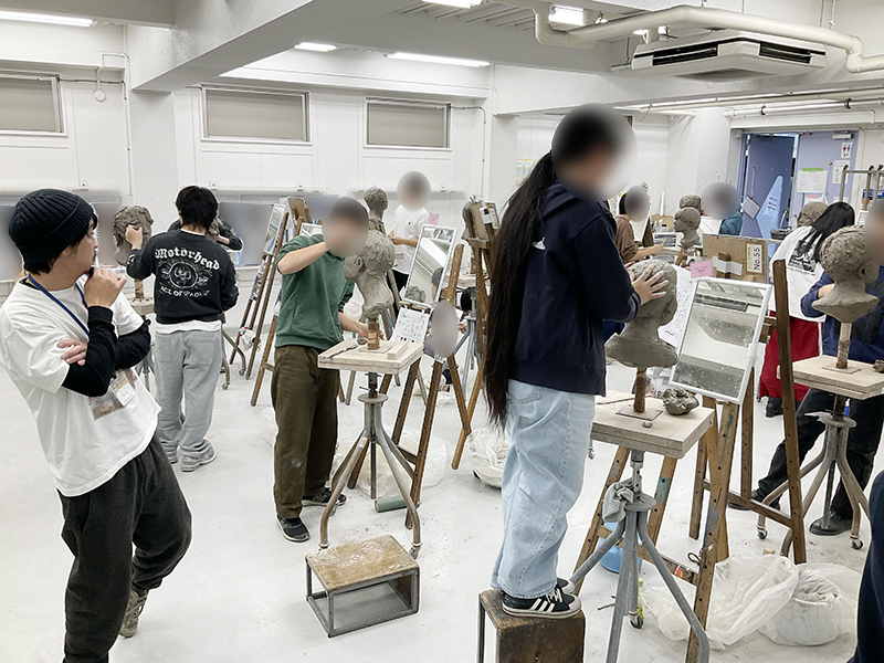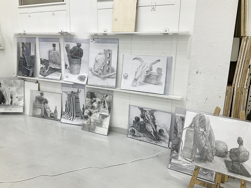 デッサンコースは鉛筆、木炭、検討している専攻によって描画用具を選びます。