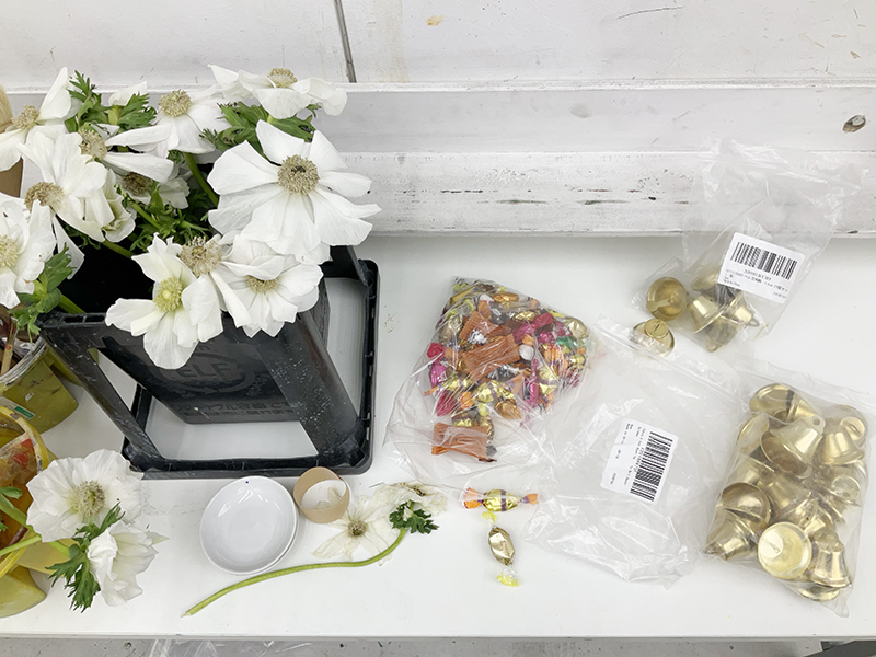 アネモネ🌼、クリスマスオーナメント🔔、リボン🎗️、飴🍬