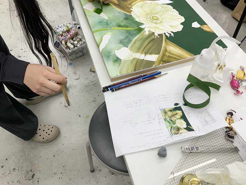 モチーフ観察を大切にしながらも、「どのような現場を描くか」という舞台設定から考えなければいけないのが想定課題の難しいところ。