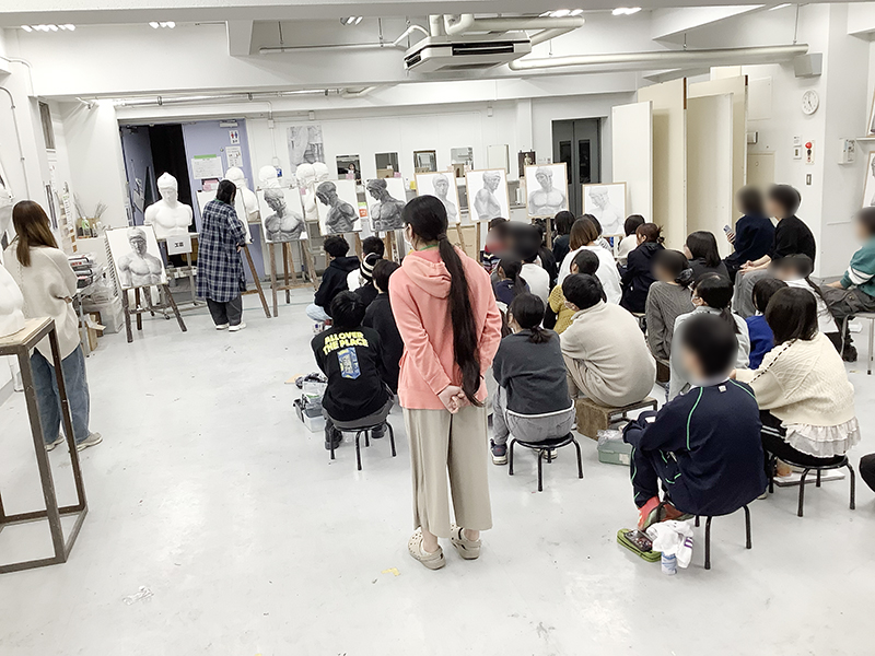 基礎科では、全コースで初めて実技を取り組む方や初心者に向けて丁寧に画材説明含めた導入を行なっています。