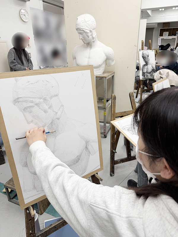 冬季講習会2期Bの1課題目は石膏デッサンでした。