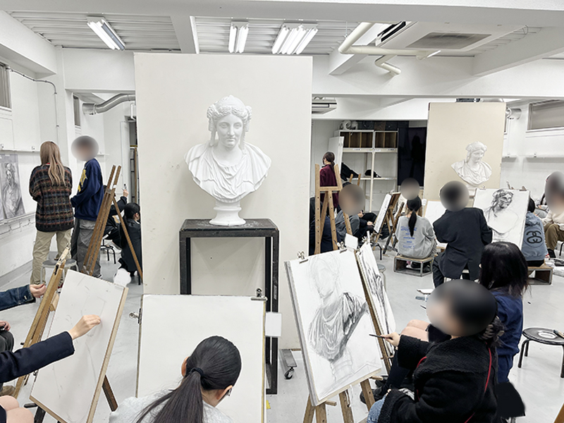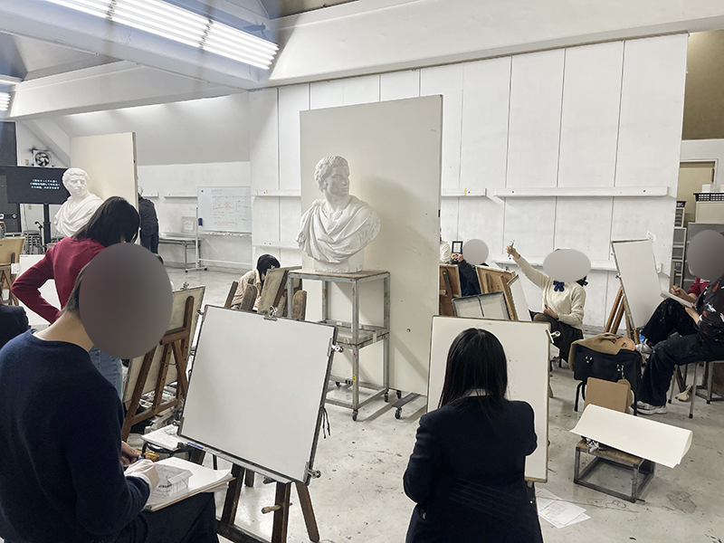 初日は、石膏デッサンの共通課題からスタート。短い3学期ですが、ひとつひとつの課題を大切に進めていきましょう。
