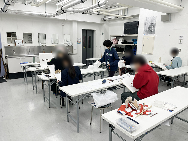 基礎科では、全コースで初めて実技を取り組む方や初心者に向けて丁寧に画材説明含めた導入を行なっています。