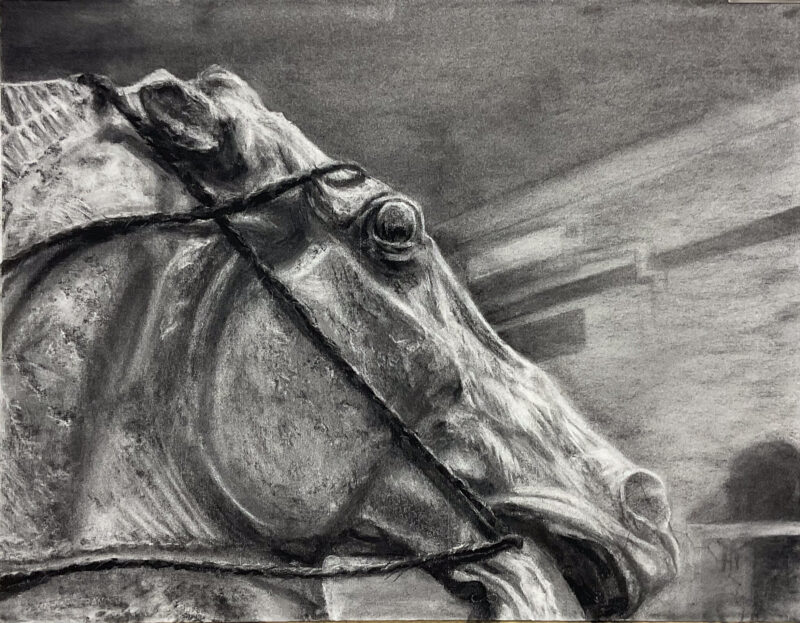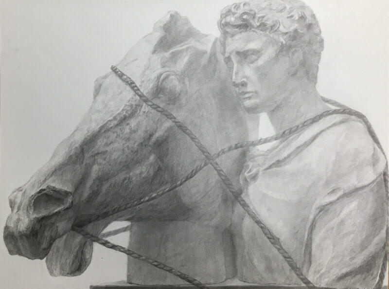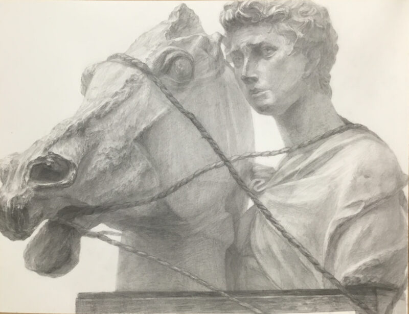 ↑馬を引き連れるジョルジョ。目線の先には何があるのでしょう….。静かな闘志を感じられますね。デッサンからストーリーも思い浮かべてしまうような、とても臨場感のあるデッサンに仕上がっています。