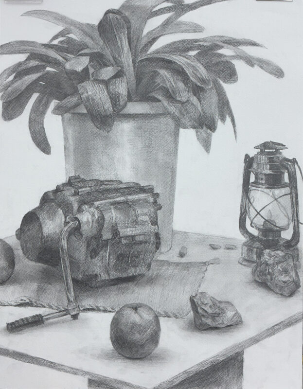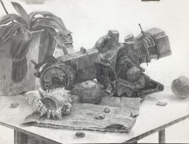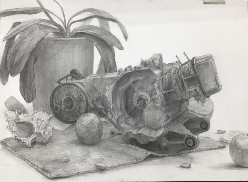↑観葉植物とエンジンと貝殻と…質感が大きく異なったモチーフでしたが、それぞれの違いをしっかり観察しているので、全体的な完成度がとても高い!
