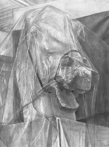 ↑馬頭にかかった透明クロスの微妙な陰影やハイライトを美しく描く事が出来ています!黒バックの布に対する手前の馬頭の白さが際立っています。