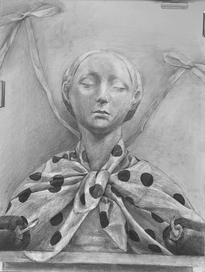 ↑ドット側の布を纏って微笑むマリエッタ。色味の調整がとても的確なので、臨場感がすごい!光が美しく描けています。