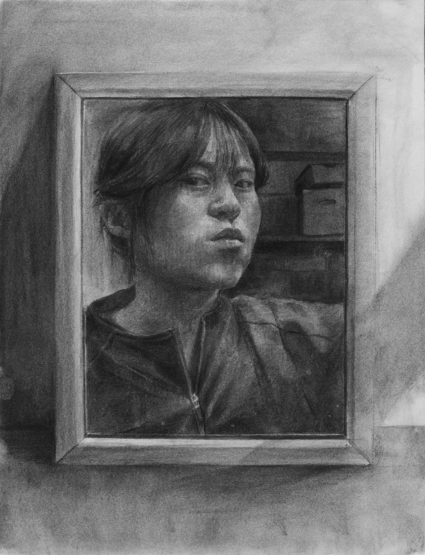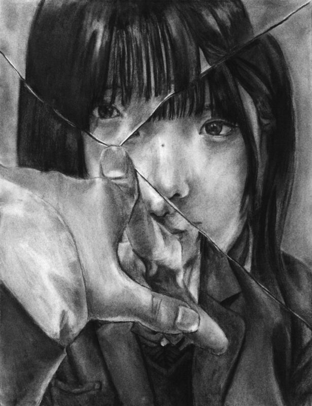 前回の自画像と同様に感じるかもしれませんが、顔を描ければ良いものでなく「鏡の中」と云うキーワードに注目してどのように創作できるか?各自の可能性を探りたい気持ちがあります。描く前の準備の大切さを問うてみました。」