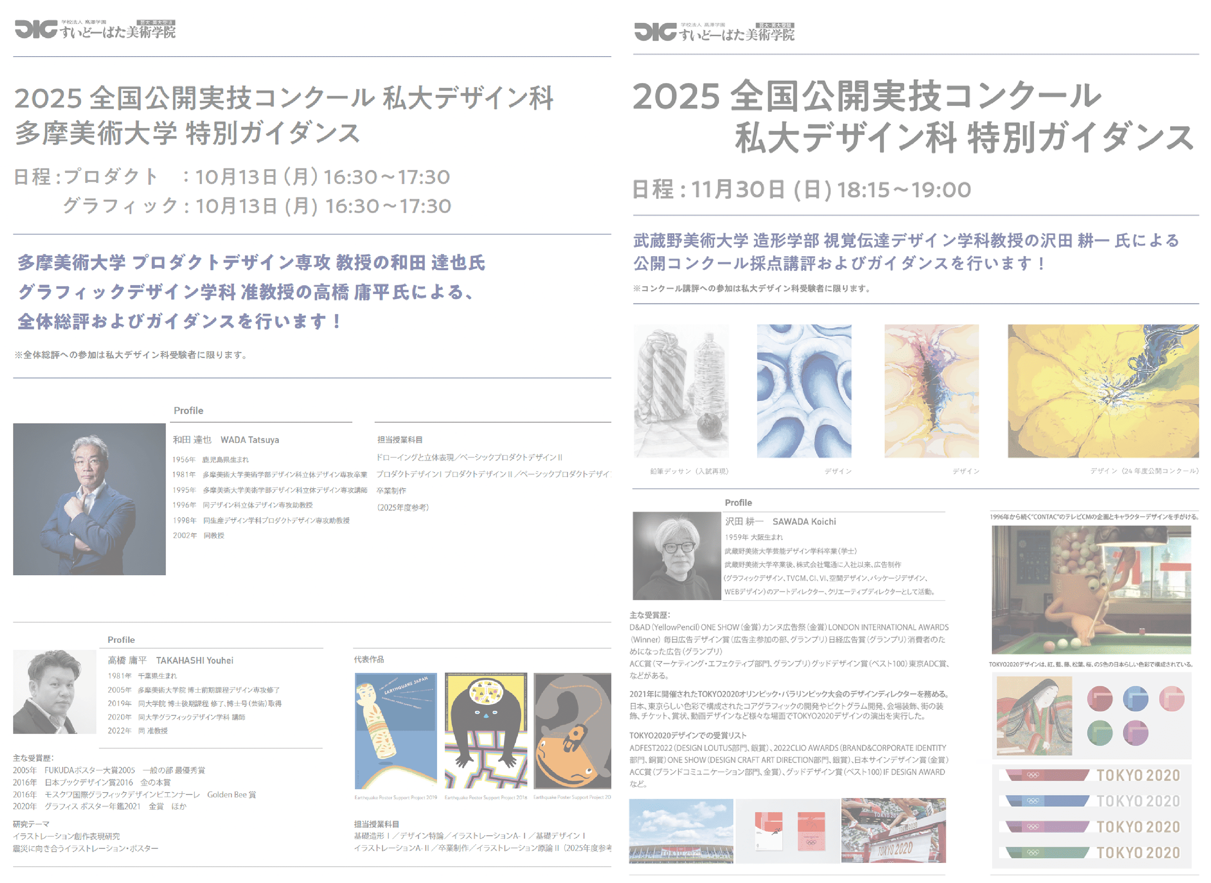 2025年度 全国公開実技コンクール 私大デザイン科 多摩美術大学 / 武蔵野美術大学 特別ガイダンス