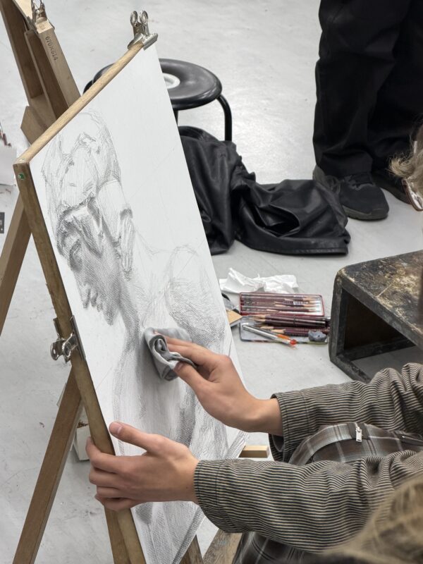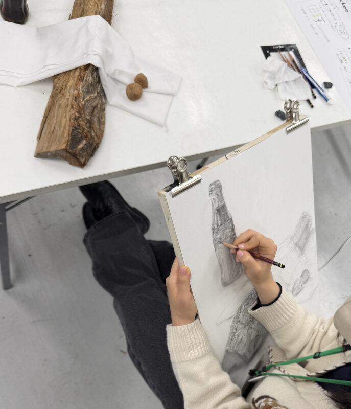 鉛筆デッサンの導入担当は東京藝大デザイン科在籍の学生講師です。