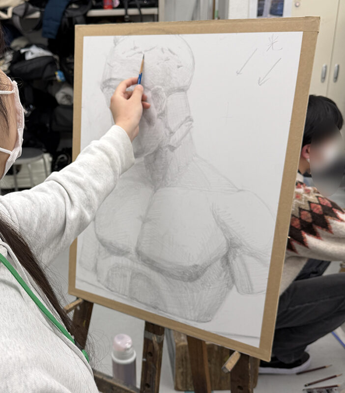 石膏デッサンは描写を学ぶ基本ですが、各コースの入試内容によって、少しずつ扱い方が異なります。