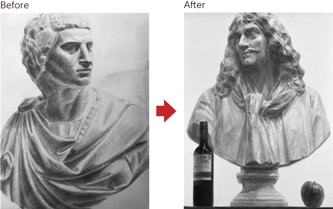 東京藝術大学工芸の入試に必要な【デッサン/平面構成/立体構成】の3科目を中心に、主要美大への進学に必要な基本事項をリモート形式で学ぶことができます。