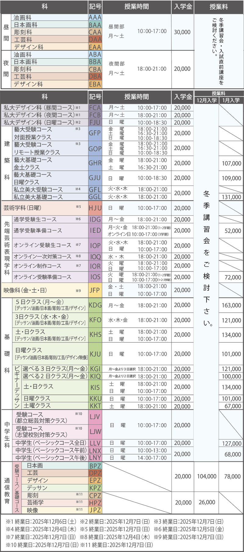 - 本年度および前年度の体験入学、高校生デッサンコンクールに参加申込した
