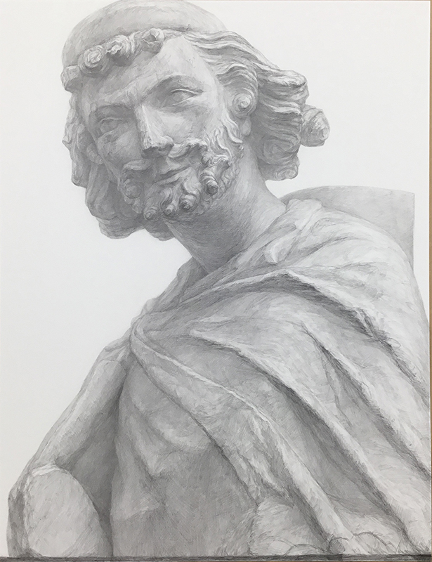 鉛筆の塗りと明暗がバッチリフィットして、画用紙の中の白い空間に自然に像が立ち上がっている!