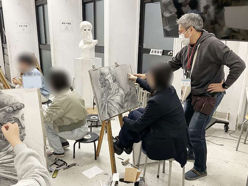こちらは日本画コース。講師がシビアに形や明暗の捉え方を指導していましたよ!