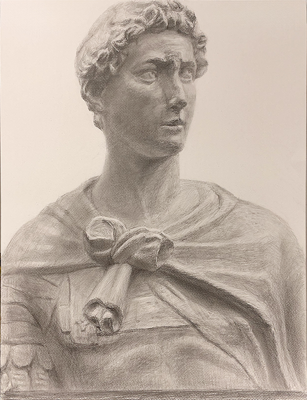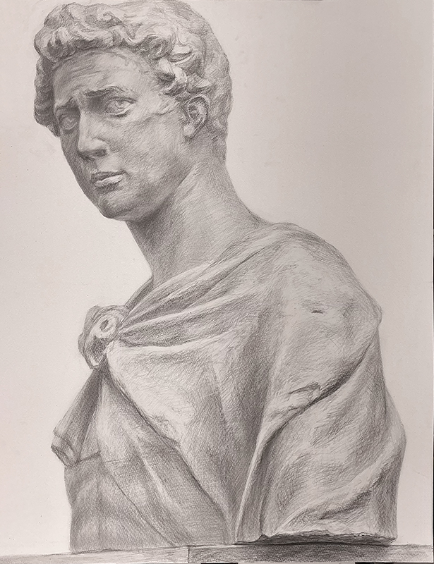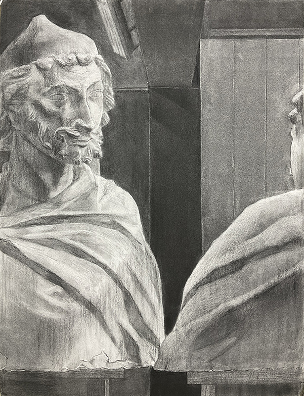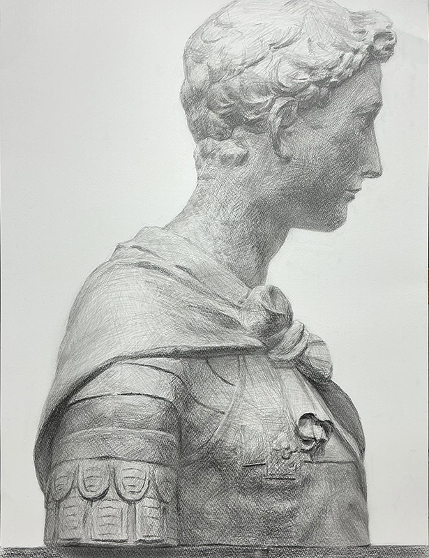 明暗のバランス感覚が良い点もさることながら、的確なハッチングが石膏の密度や重量感を表現できていますね✌️