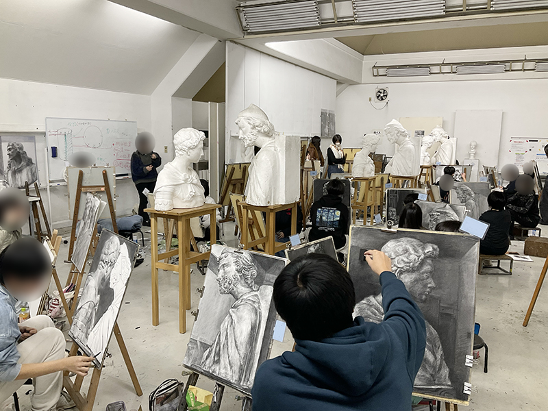 石膏デッサンは描写を学ぶ基本ですが、各コースの入試内容によって、少しずつ扱い方が異なります。