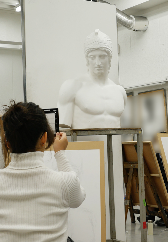 日本画コースでは、石膏デッサンの描き方をあらためて考える、ゼミ形式の課題に取り組みました。