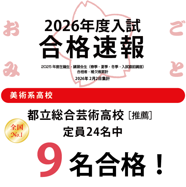 2026年度 都立総合芸術高校(推薦)、合格速報です。