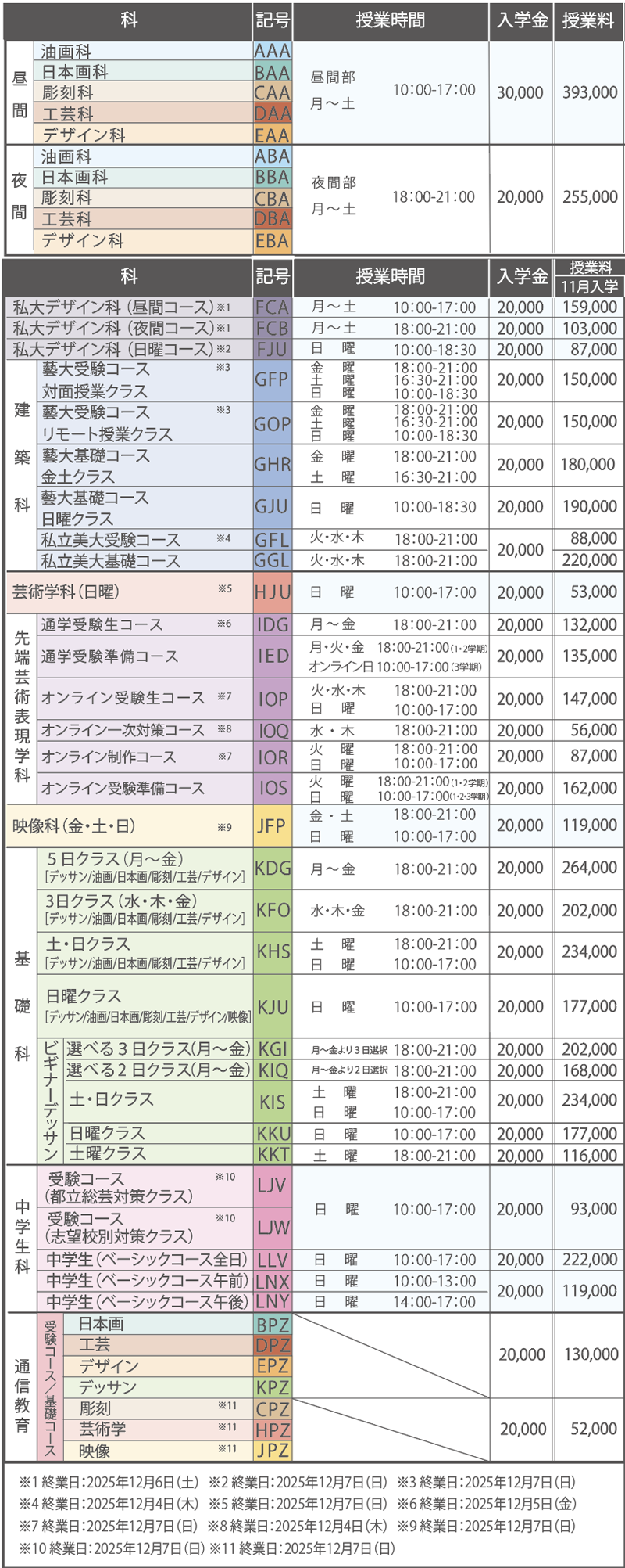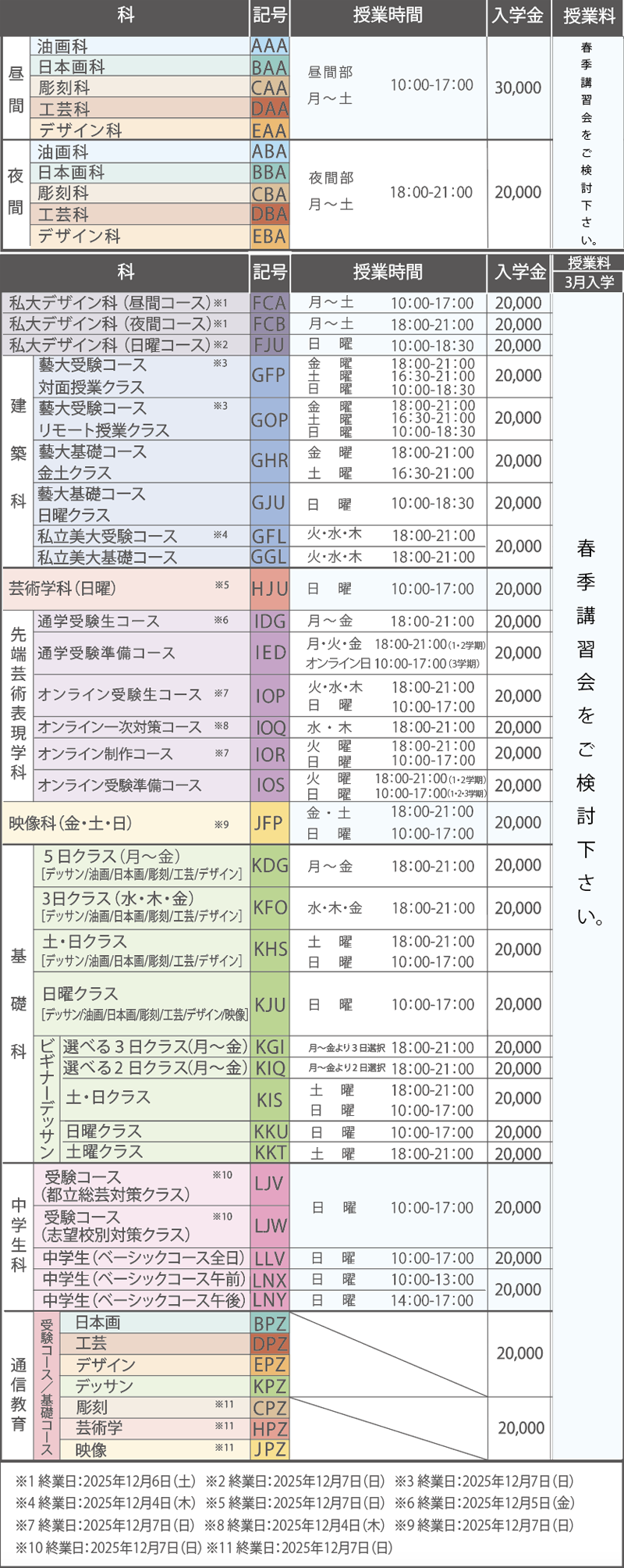 - 本年度および前年度の体験入学、高校生デッサンコンクールに参加申込した
