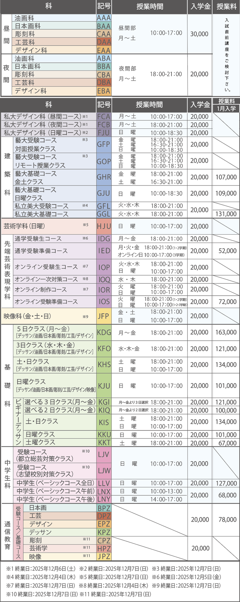 - 本年度および前年度の体験入学、高校生デッサンコンクールに参加申込した