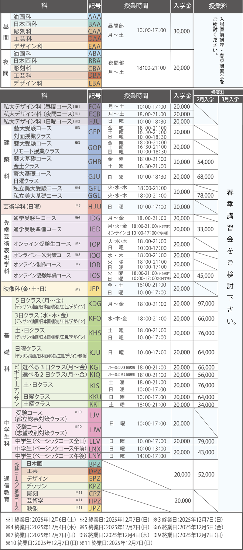 - 本年度および前年度の春季・夏季・冬季講習会を受講した